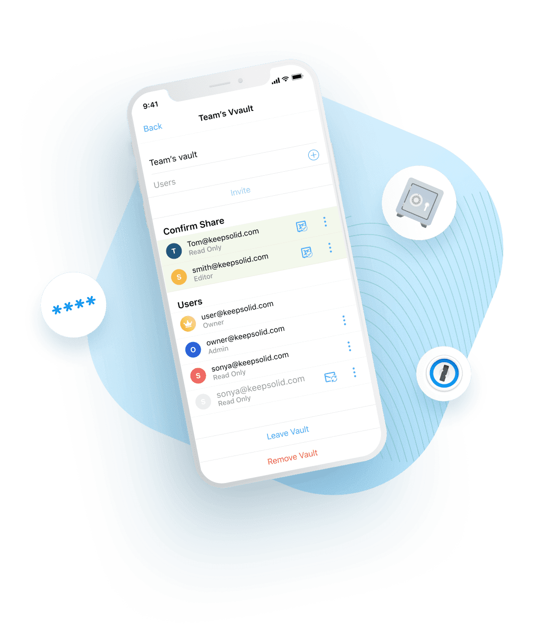 In Passwarden you can set up various permission levels when you share data: Admin, Editor, and Viewer. If you want to limit the right of Vault members to edit the items, you can set up the Viewer access rights and give them read-only access. Or, for instance, having Admin rights, you can assign particular users to change the items and give them the Editor access.
