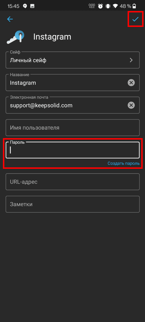 Сохраните все свои пароли, данные от аккаунтов и другую важную информацию в зашифрованном хранилище и пользуйтесь ими в любой момент!