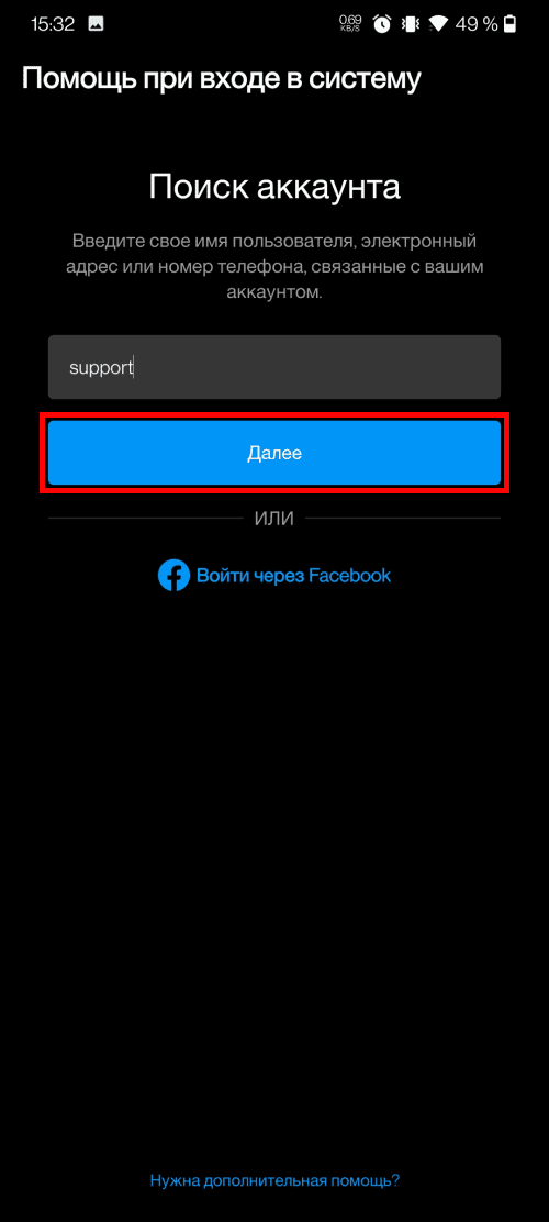 2. Введите имя пользователя, email или номер телефона, привязанный к вашему Instagram-аккаунту.