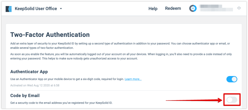 Отлично! Вы успешно привязали свой email к учетной записи KeepSolid ID. С этого момента вам необходимо ввести шестизначный код аутентификации с вашей электронной почты для входа в свою учетную запись на новом устройстве.