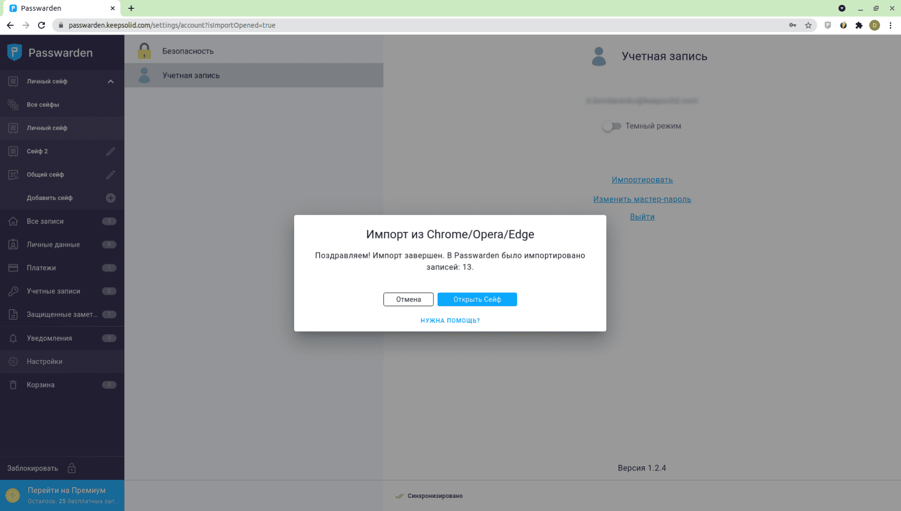 Прекрасно! Вы успешно импортировали все свои пароли в Passwarden.