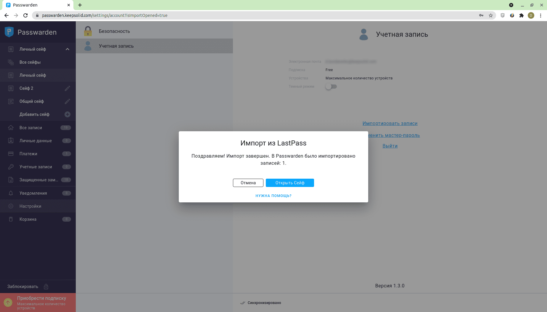 Прекрасно! Если у вас возникли вопросы или комментарии по поводу нашего менеджера паролей, свяжитесь с нашей службой поддержки [email protected].
