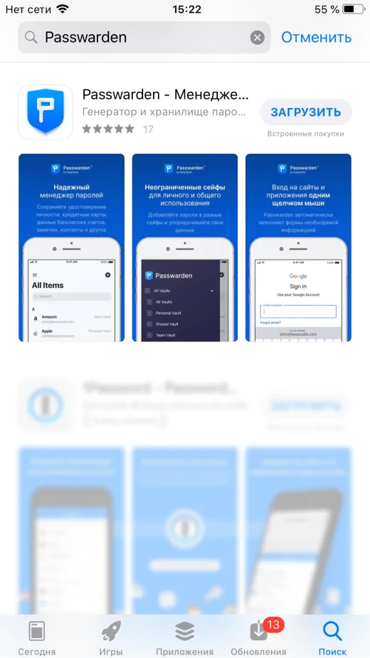 1. Чтобы скачать наш лучший менеджер паролей для iPhone, перейдите по этой ссылке. Или вы можете открыть App Store и написать Passwarden в поле поиска.