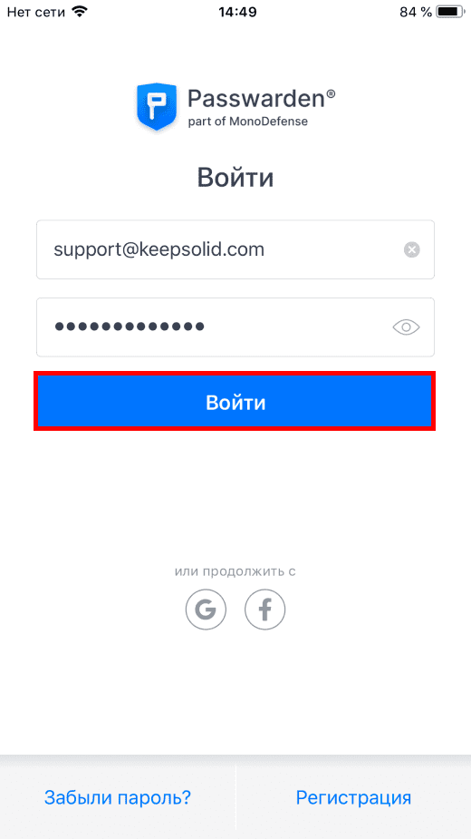 Если у вас уже есть KeepSolid ID, просто введите свой email и пароль. После этого нажмите Войти. Вы также можете войти используя свой AppleID, аккаунты Facebook или Google.