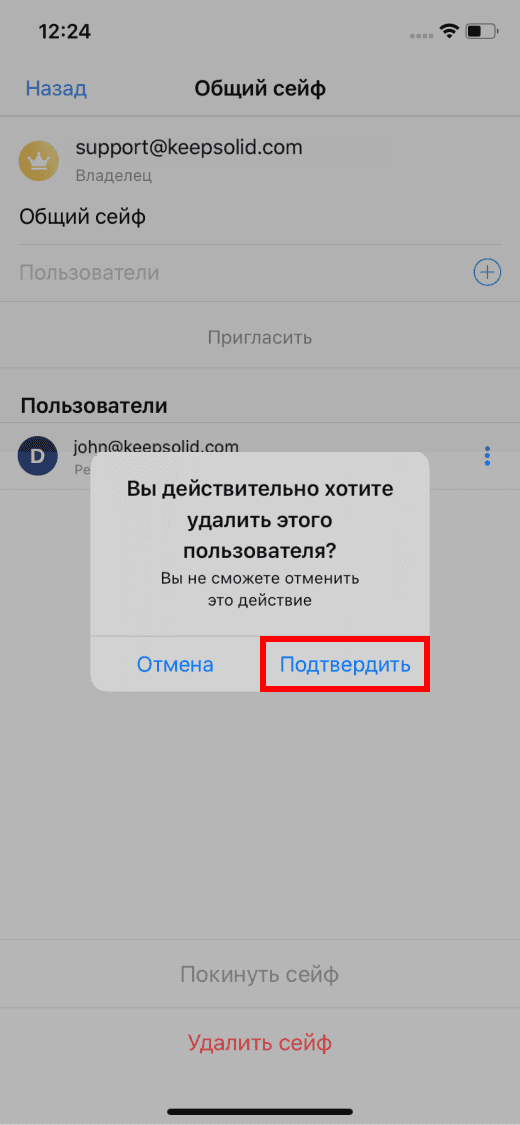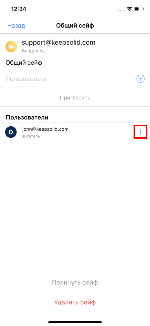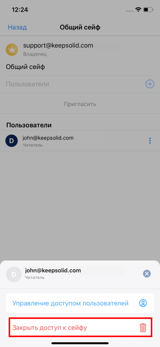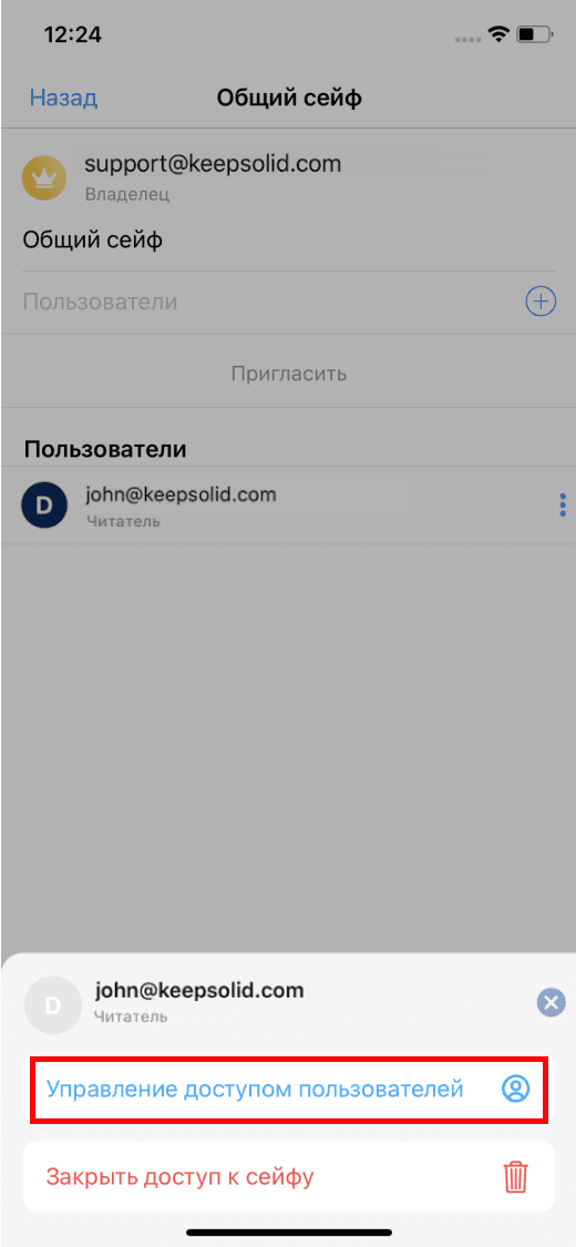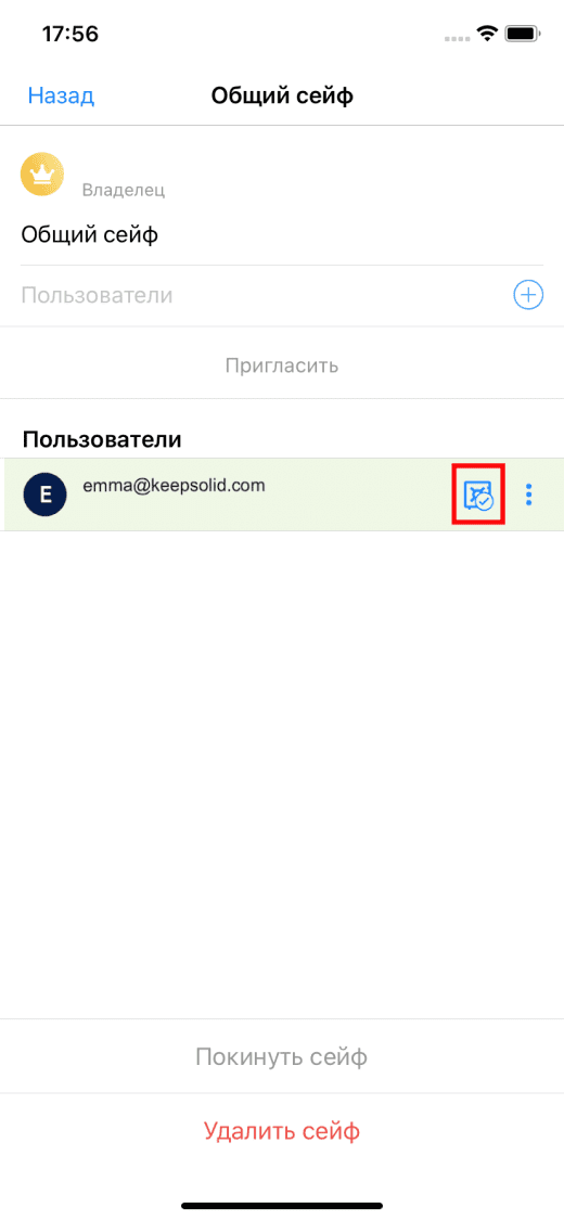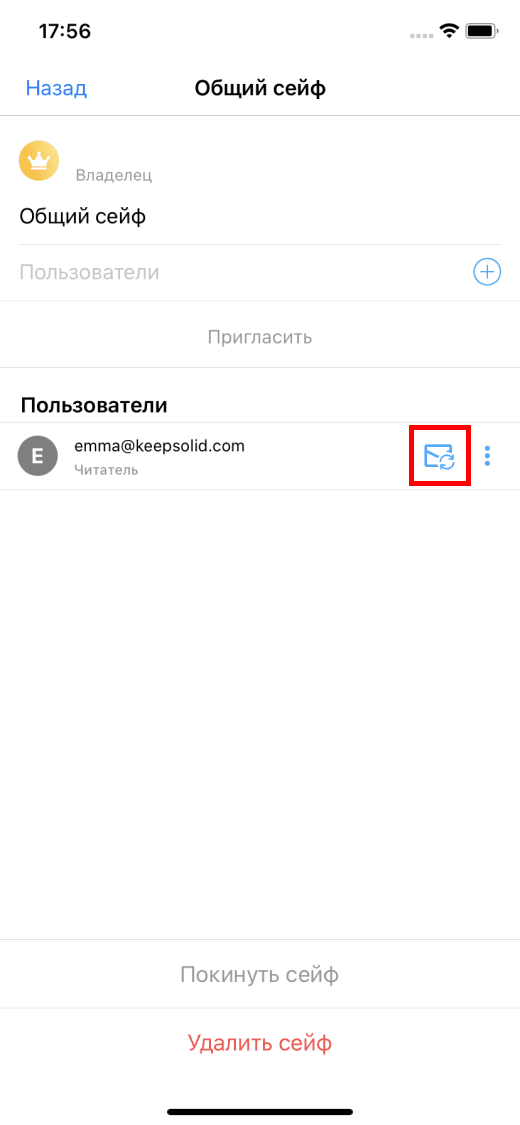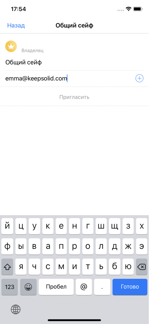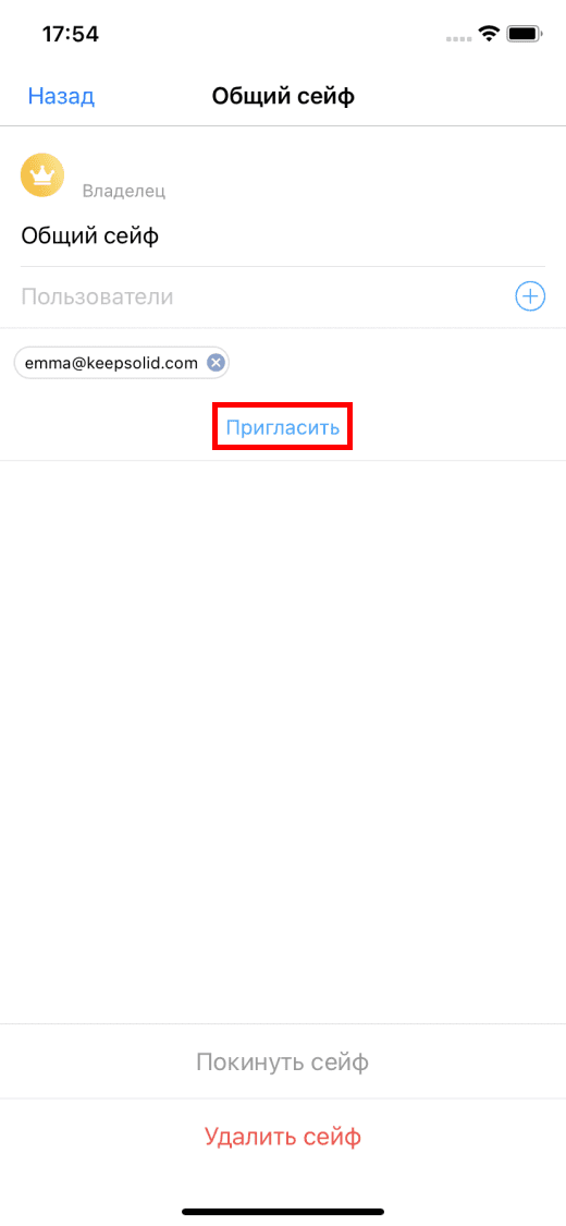5. Если вы приглашаете пользователя, у которого уже есть KeepSolid ID, просто поделитесь этим сейфом, нажав кнопку