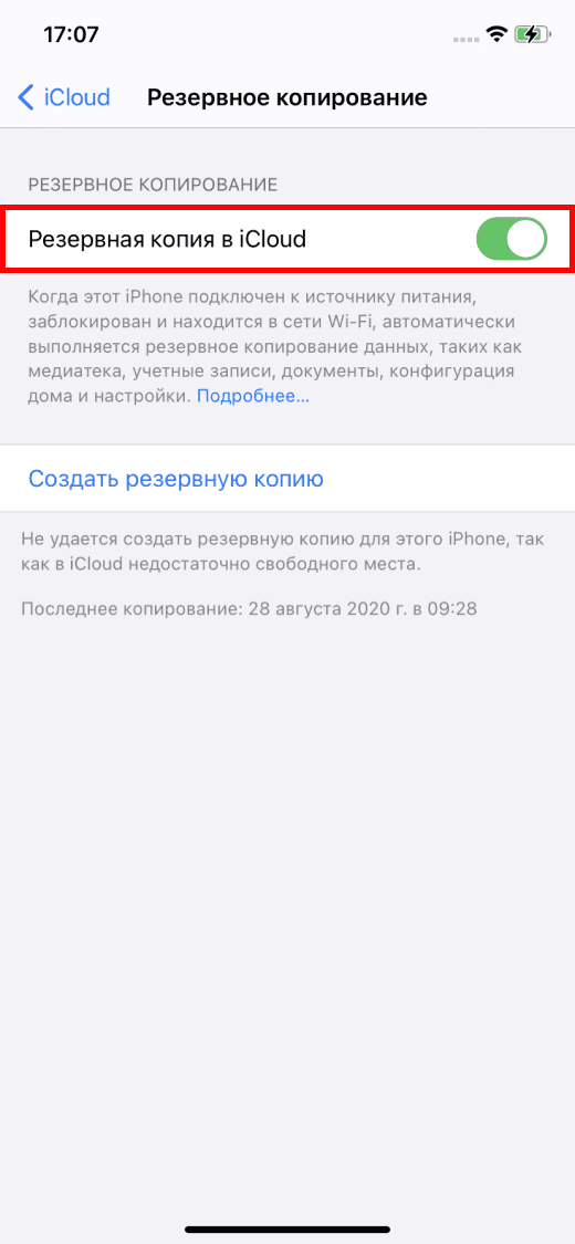 4. A Создание резервной копии начнется автоматически. Если этого не случилось, вы можете начать его вручную, нажав кнопку Создать резервную копию.