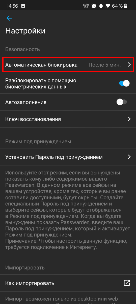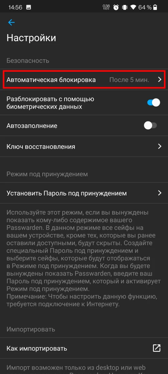 1. Перейдите в Настройки и выберите Автоматическую блокировку в разделе Безопасность.