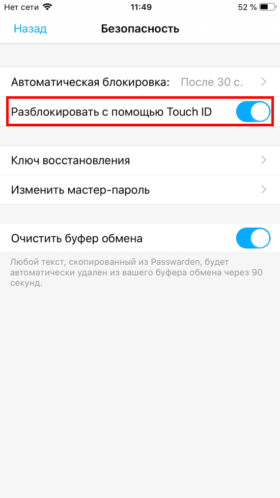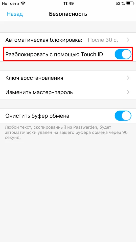 Дополнительная защита менеджера паролей Passwarden с функцией Touch ID к вашим услугам.