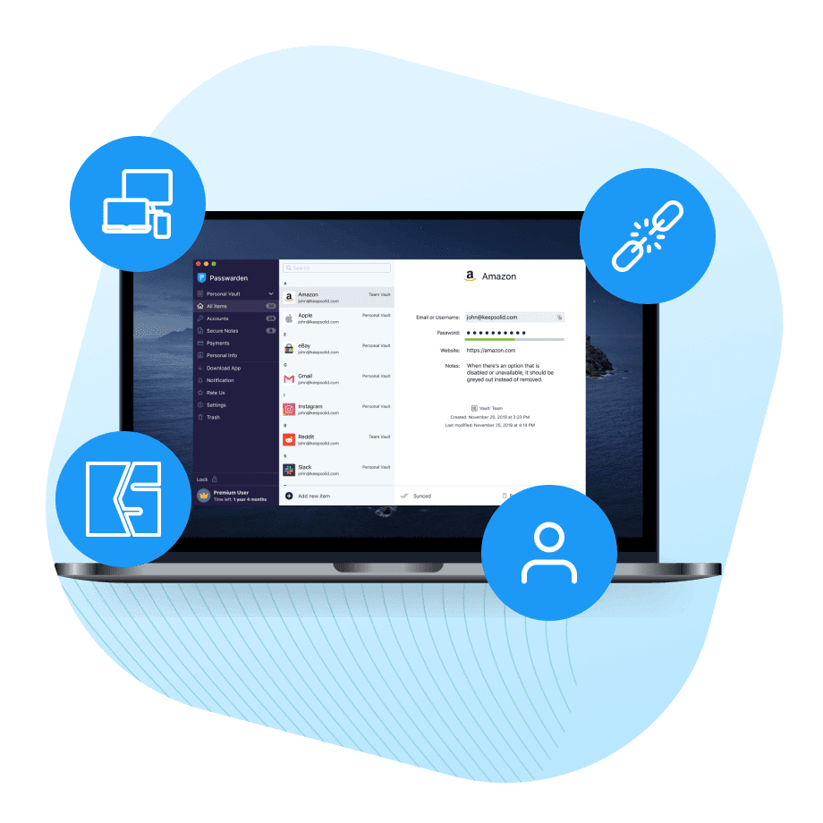 Keepsolid’den şifre yöneticisinin şifreleri depolaması sizi şaşırtmaz. Ancak, şifreler dışında Passwarden'ın hesap kimlik bilgileri, oturum açma bilgileri, yazılım lisansları, WiFi parolaları ve e-posta hesap verileri sakladığı bilinmelidir. Mac için en iyi şifre yöneticimizle yolculuğa başlayın, sayısız şifreyi hatırlamanın zorluğunu hayatınızdan silin. Bunların korunduğundan ve her an elinizin altında olduğundan emin olun!