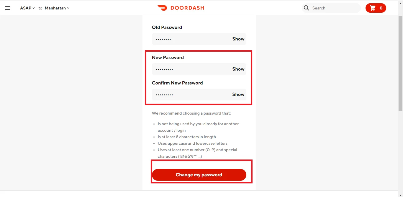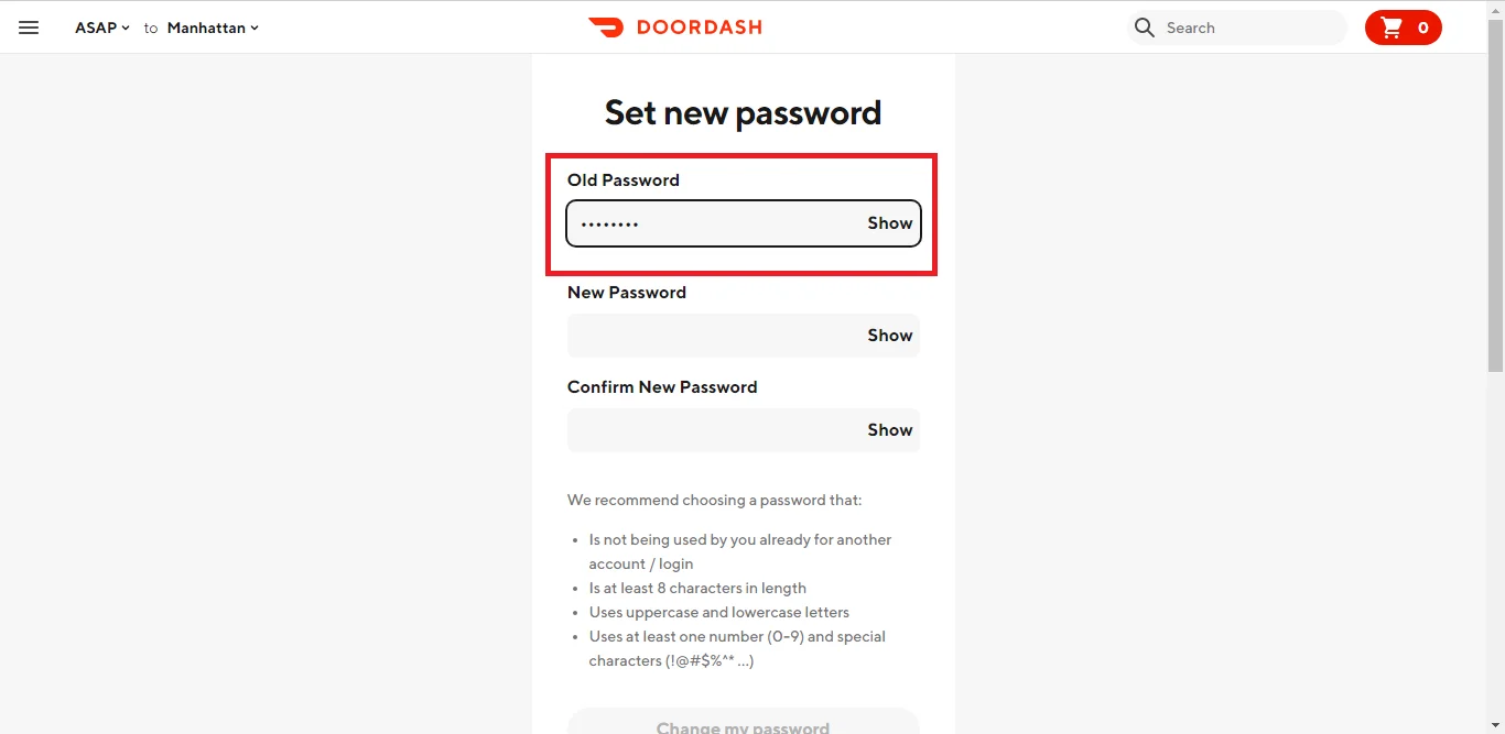 4. Оновіть свій пароль DoorDash у відповідному полі.