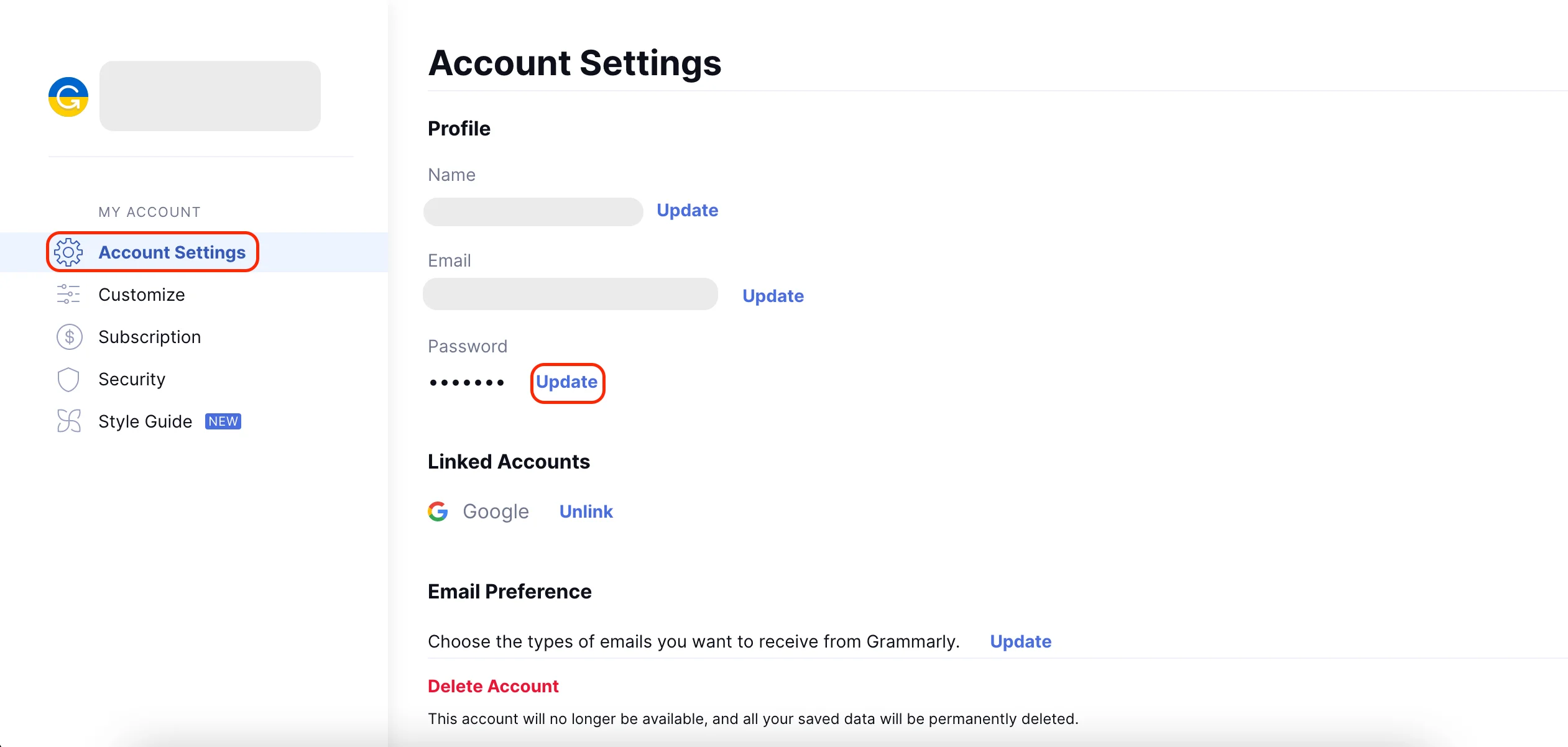Якщо ви зареєстрували Grammarly за допомогою своєї адреси електронної пошти, пам’ятаєте свій поточний пароль і хочете змінити його на новий, ви можете виконати наведені нижче кроки для зміни: