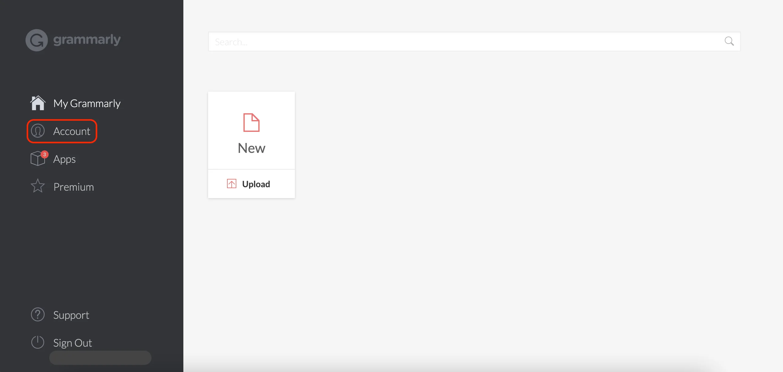1. Увійдіть у свій обліковий запис із домашньої сторінки Grammarly і виберіть Account(Обліковий запис).