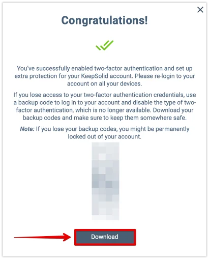 7. Make sure to save your back-up codes that you get in the new window. To do that, press Download.