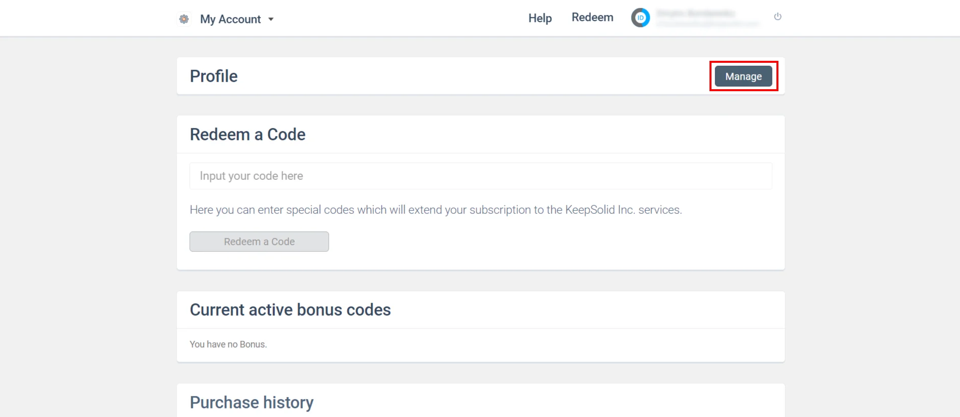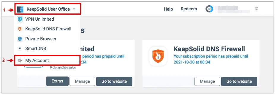 2. Go to My Account by tapping your KeepSolid ID on the right or go to My Account from the dropdown menu on the left.