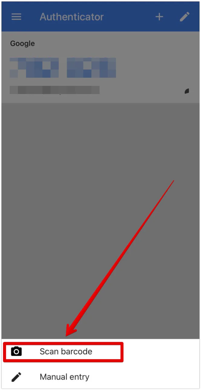 4. Now, install an Authenticator App on your device, run this app, and scan the QR code from your KeepSolid User Office by tapping the Scan barcode button (Google Authenticator was used as an example).