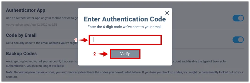2. You’ll receive the Authentication Code to your email. Copy this code, paste it to the Enter Authentication Code field, and click Verify.