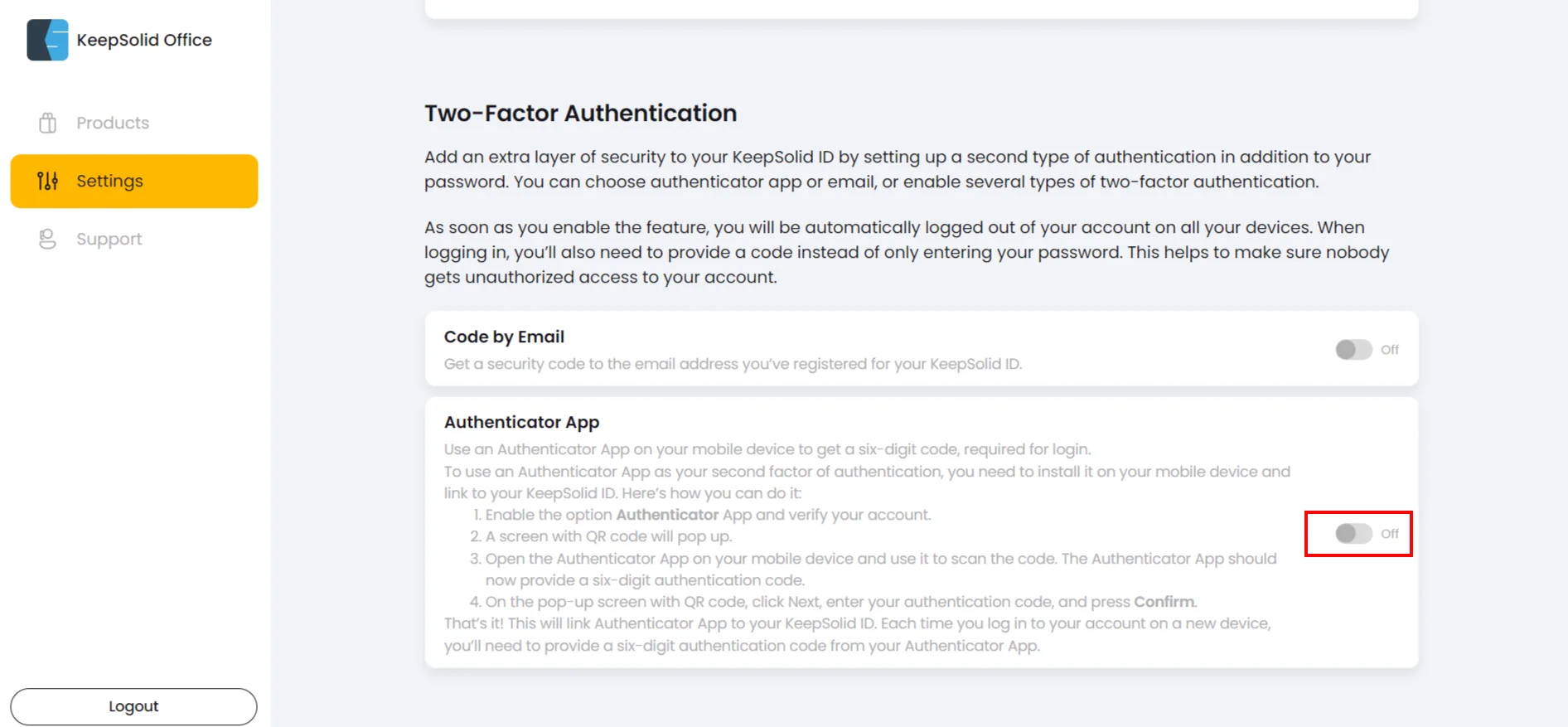 Так | Нічого не знайденоIf you want to add an extra layer of security to your KeepSolid ID, this manual is exactly for you. This guide contains a step-by-step instruction on how to enable two-factor authentication in your KeepSolid User Office. Let’s check it out!