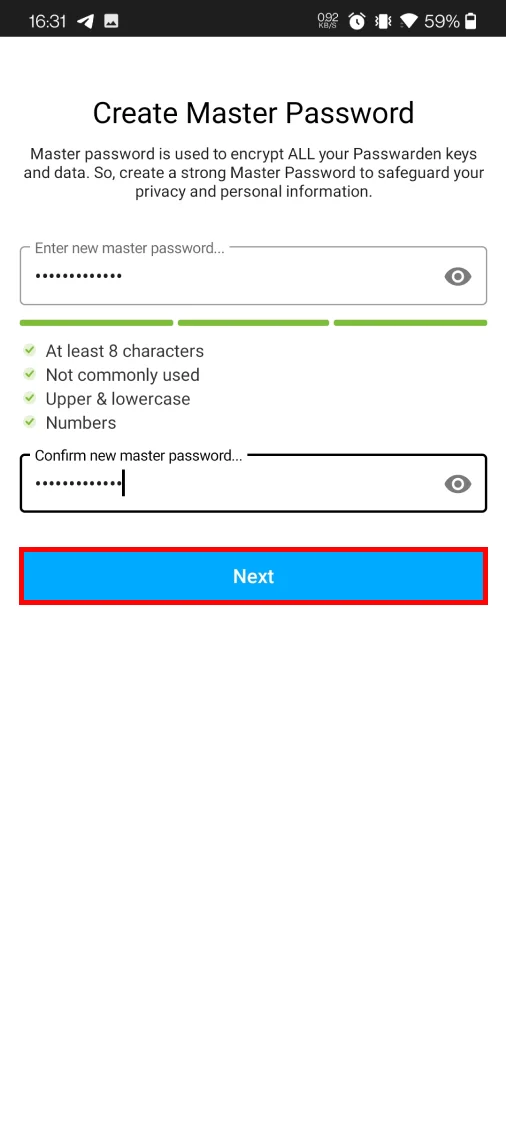 2. Тепер вам потрібно створити новий майстер-пароль. Введіть новий майстер-пароль, підтвердіть його та натисніть Next(Далі).