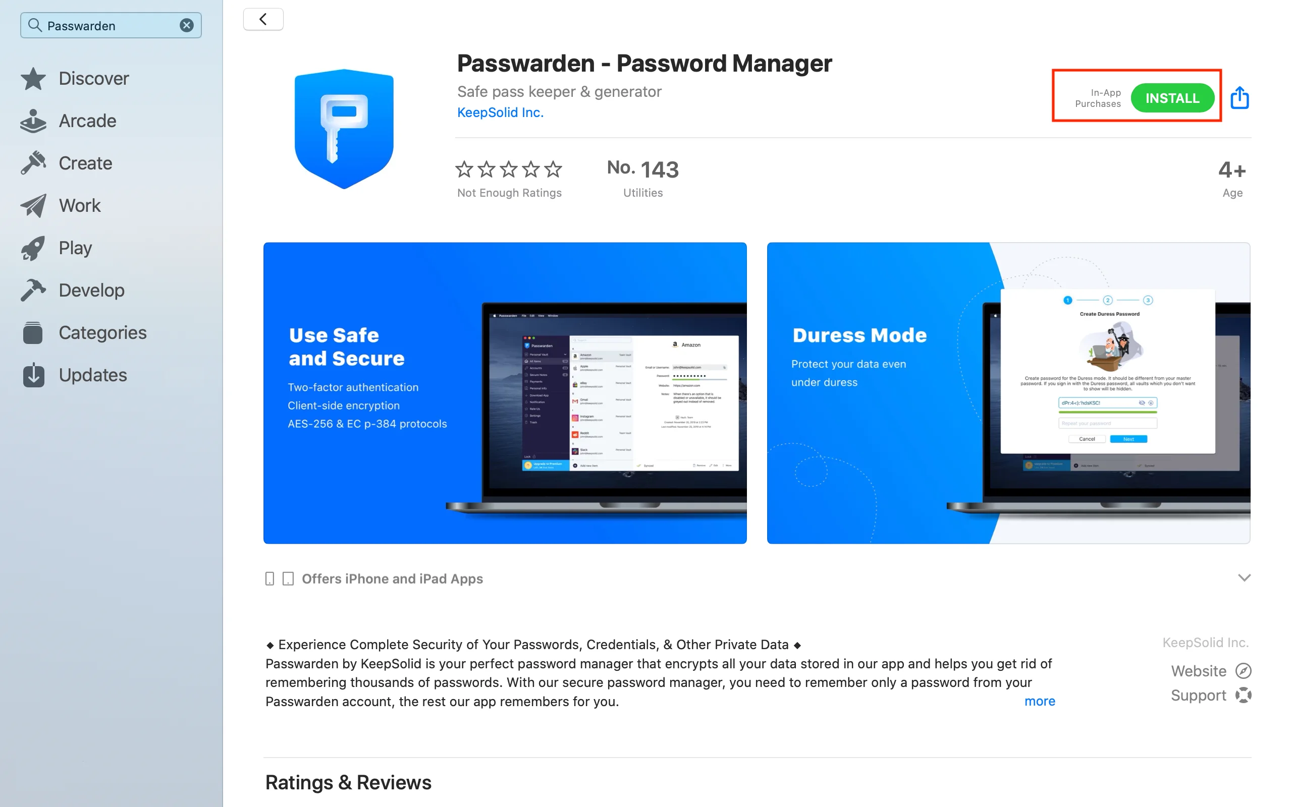 1. Завантажте Passwarden на ноутбук або ПК з macOS за цим посиланням або відкрийте Mac App Store і введіть Passwarden у поле пошуку.