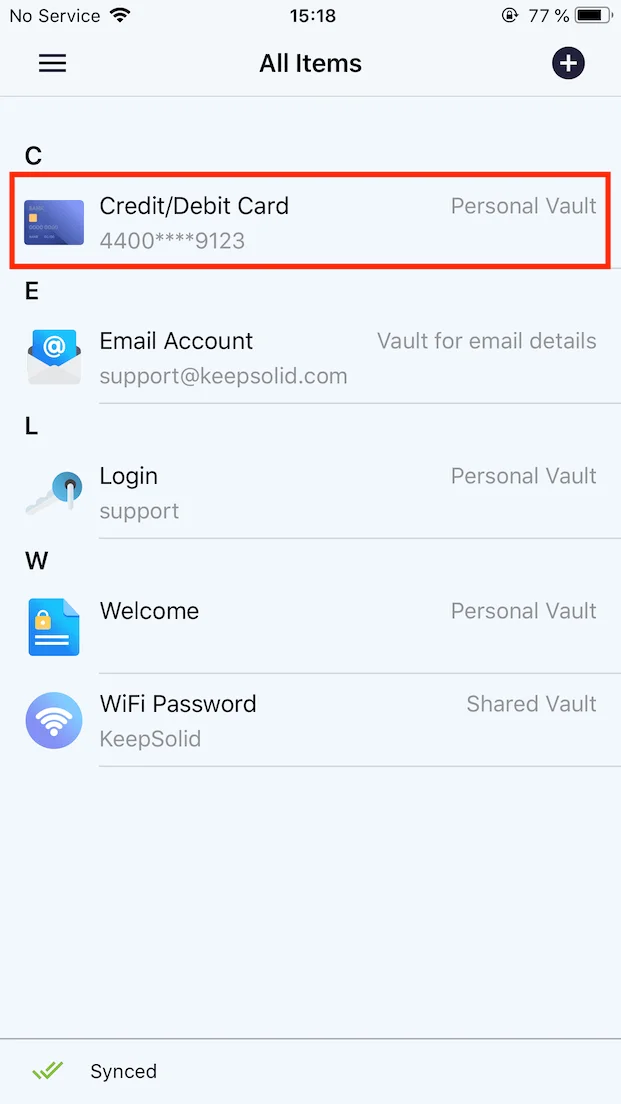1. Натисніть на запис, який потрібно відредагувати. Запис Кредитна/дебетова картка обрана як приклад.