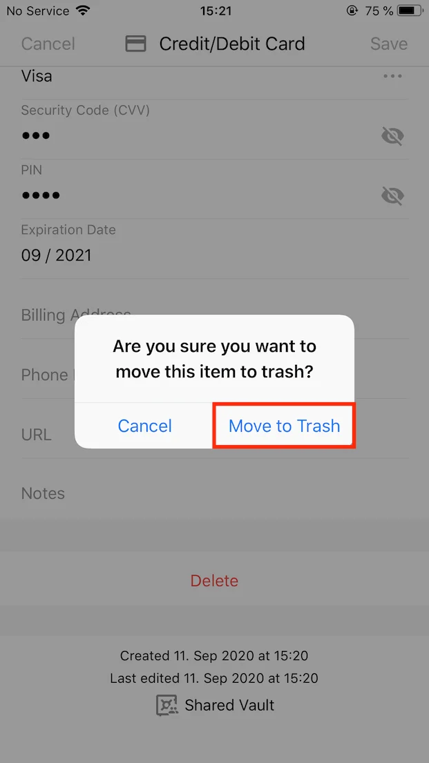 4. Натисніть Move to Trash(Перемістити до кошика), щоб підтвердити, що ви бажаєте видалити цей запис.