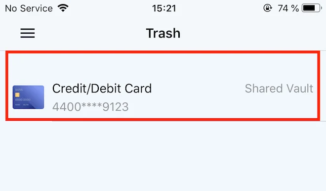 1. Виберіть запис, який потрібно видалити, натиснувши на нього. Запис Кредитна/дебетова картка обрана як приклад.