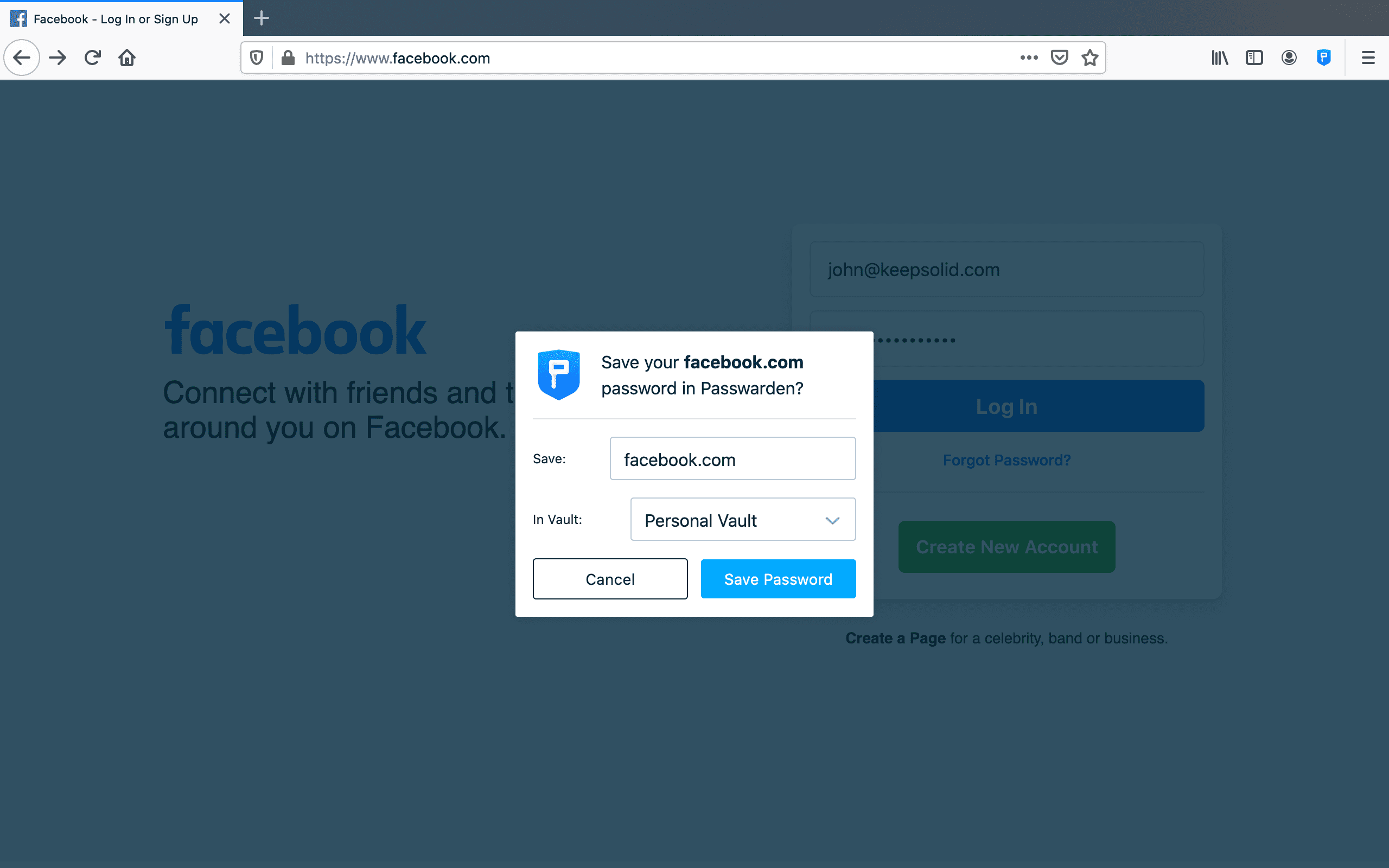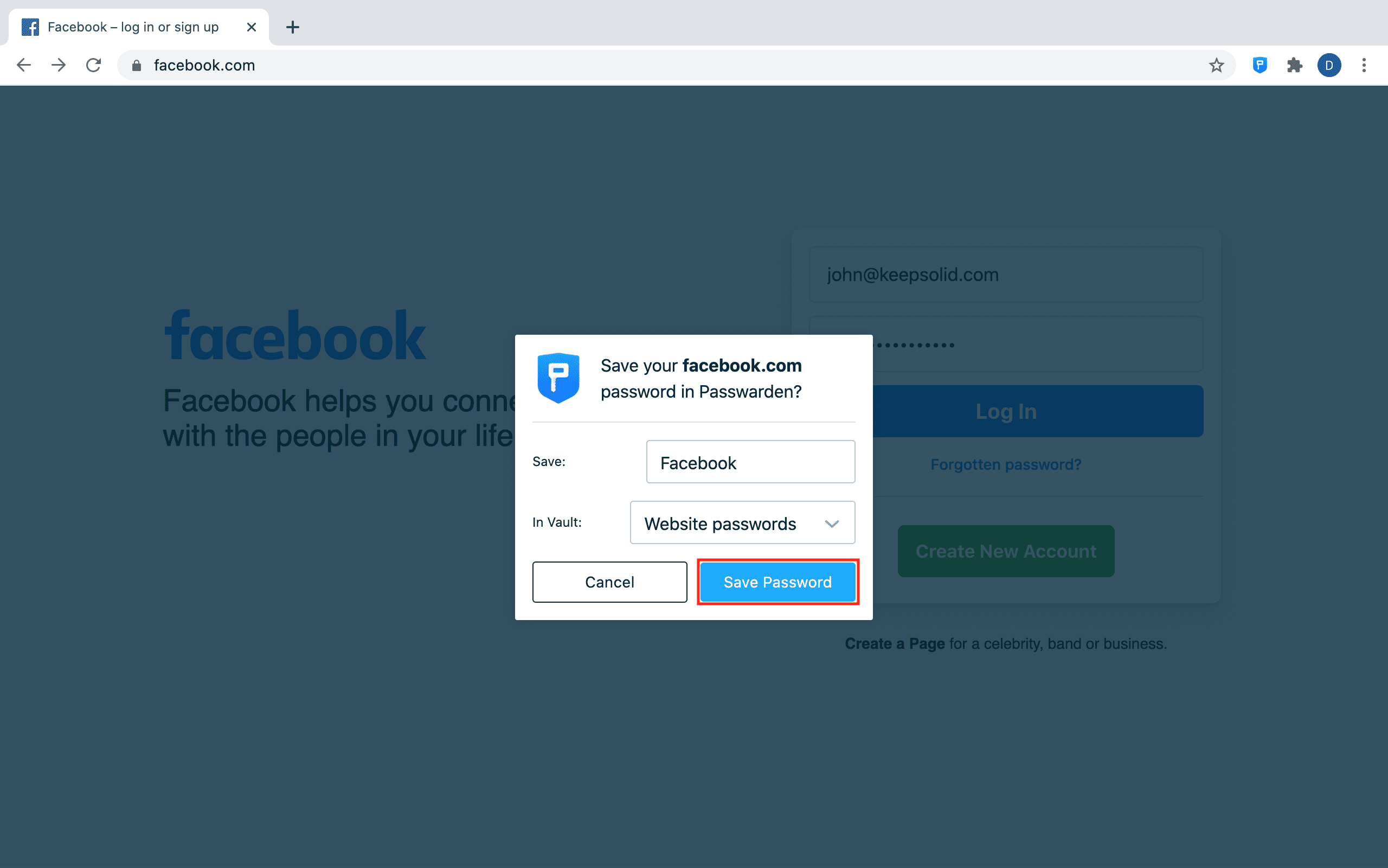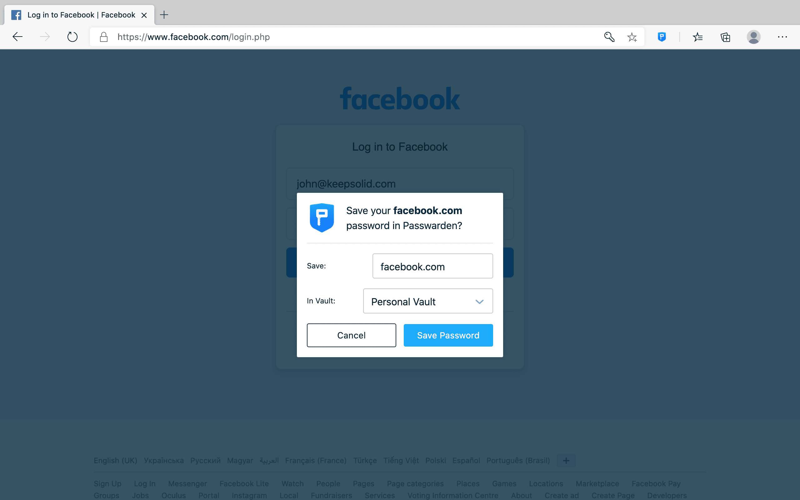 2.2. Якщо ці облікові дані не збережено у вашому сховищі Passwarden, вам буде запропоновано зберегти їх як новий запис.