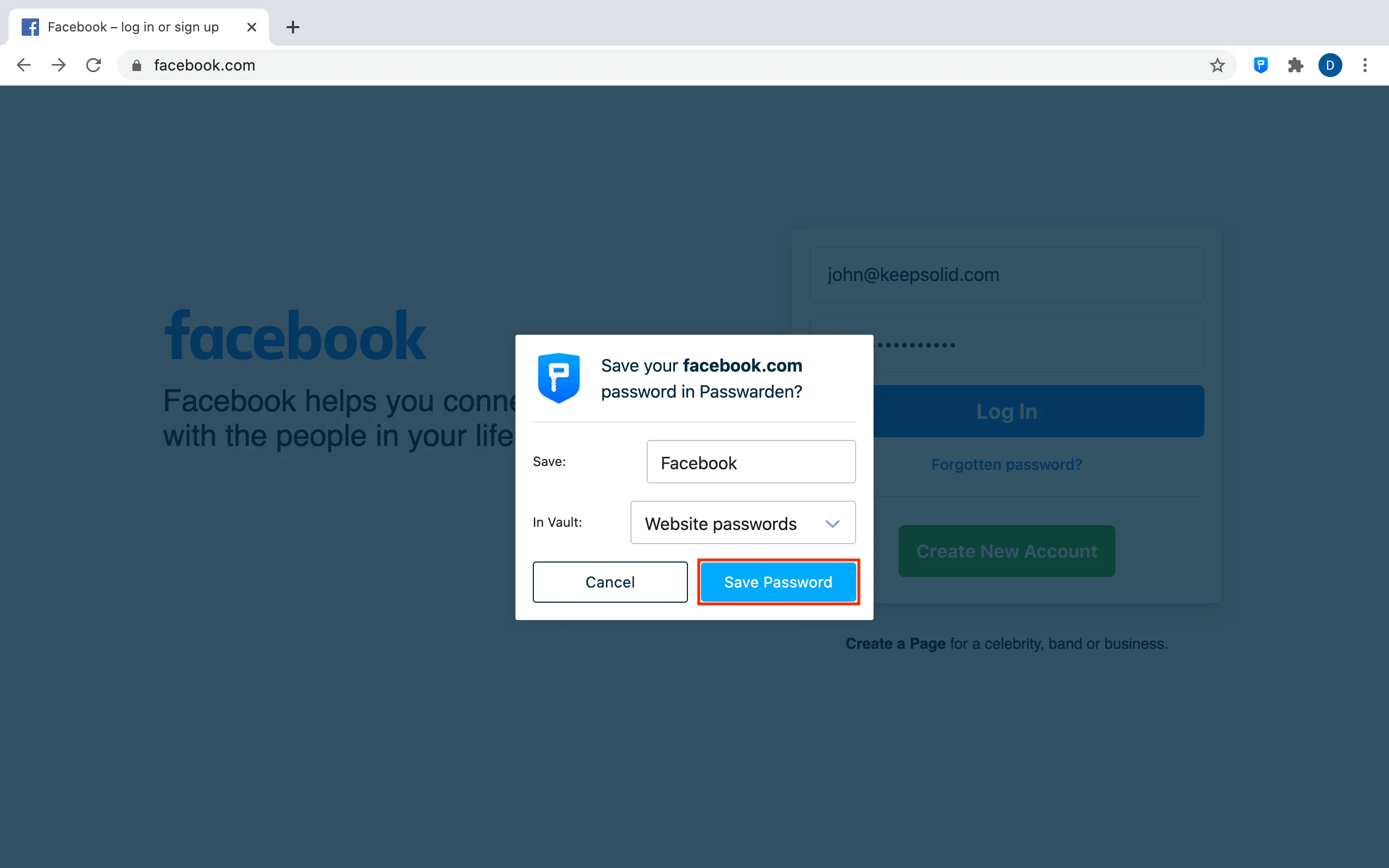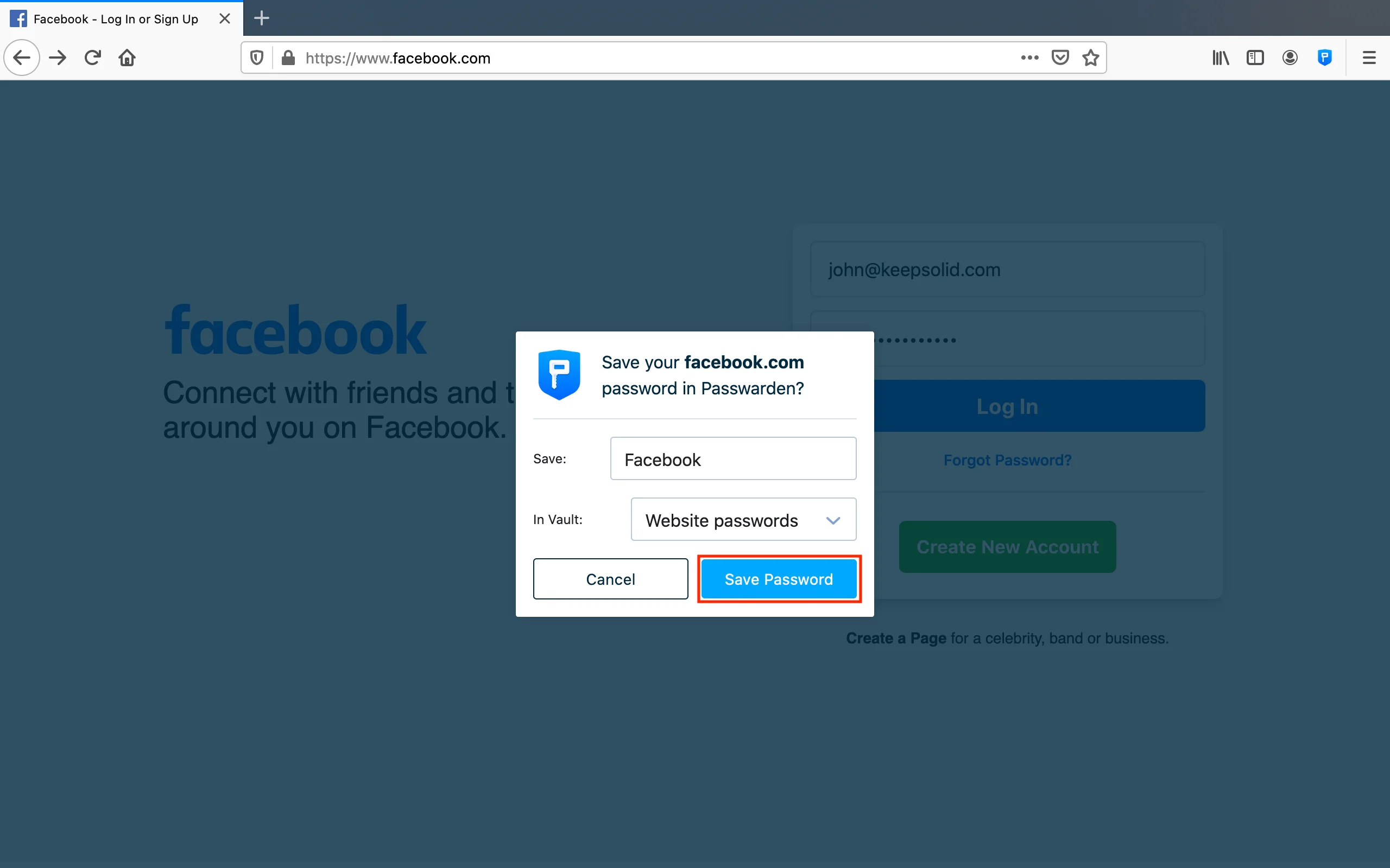 1. Перейдіть на будь-який вебсайт, наприклад, перейдіть на Facebook і увійдіть як зазвичай.