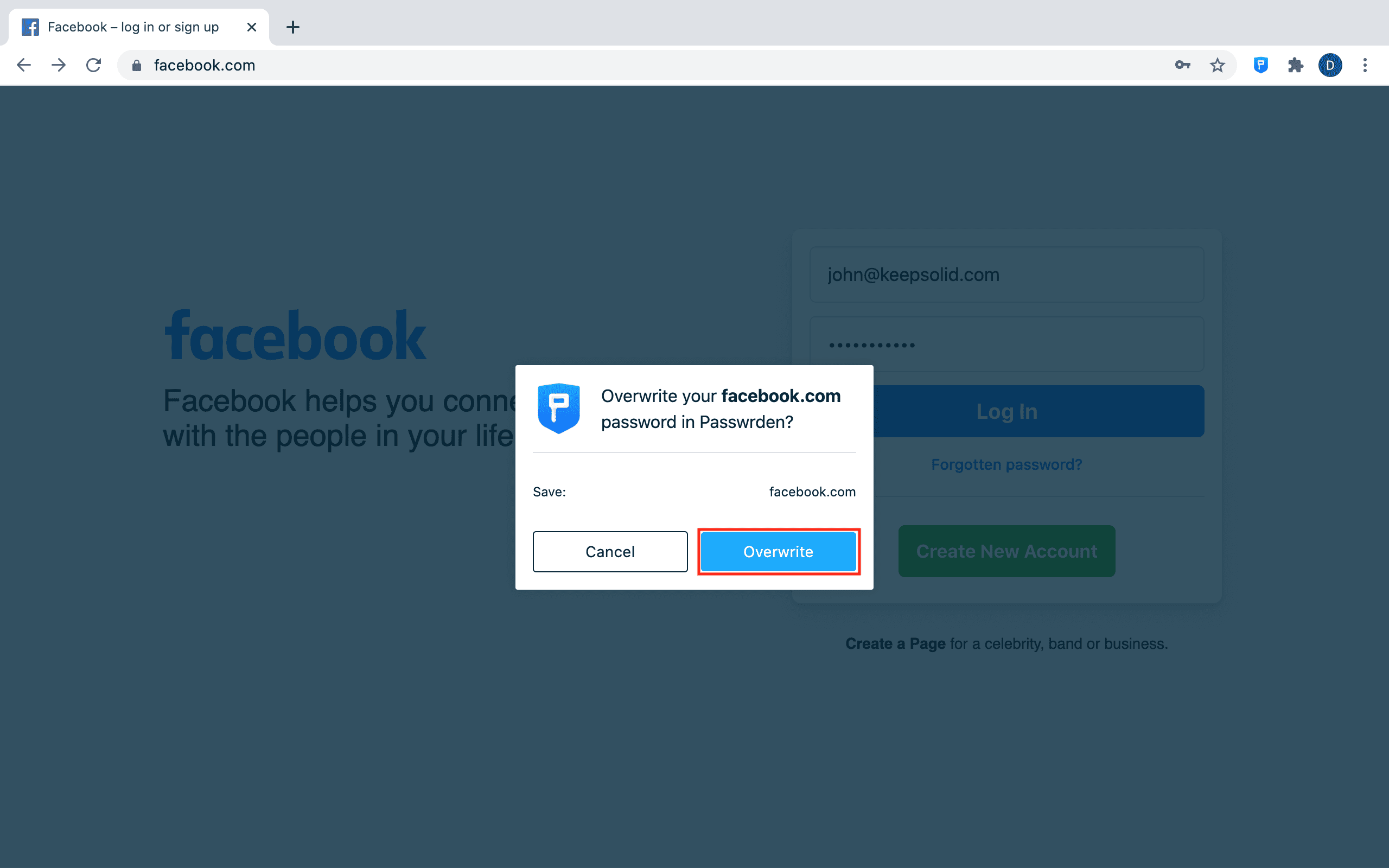 2.1. Якщо у вас уже є запис, пов’язаний із цим вебсайтом, з’явиться таке вікно. Щоб оновити цей запис, натисніть Overwrite (Перезаписати).