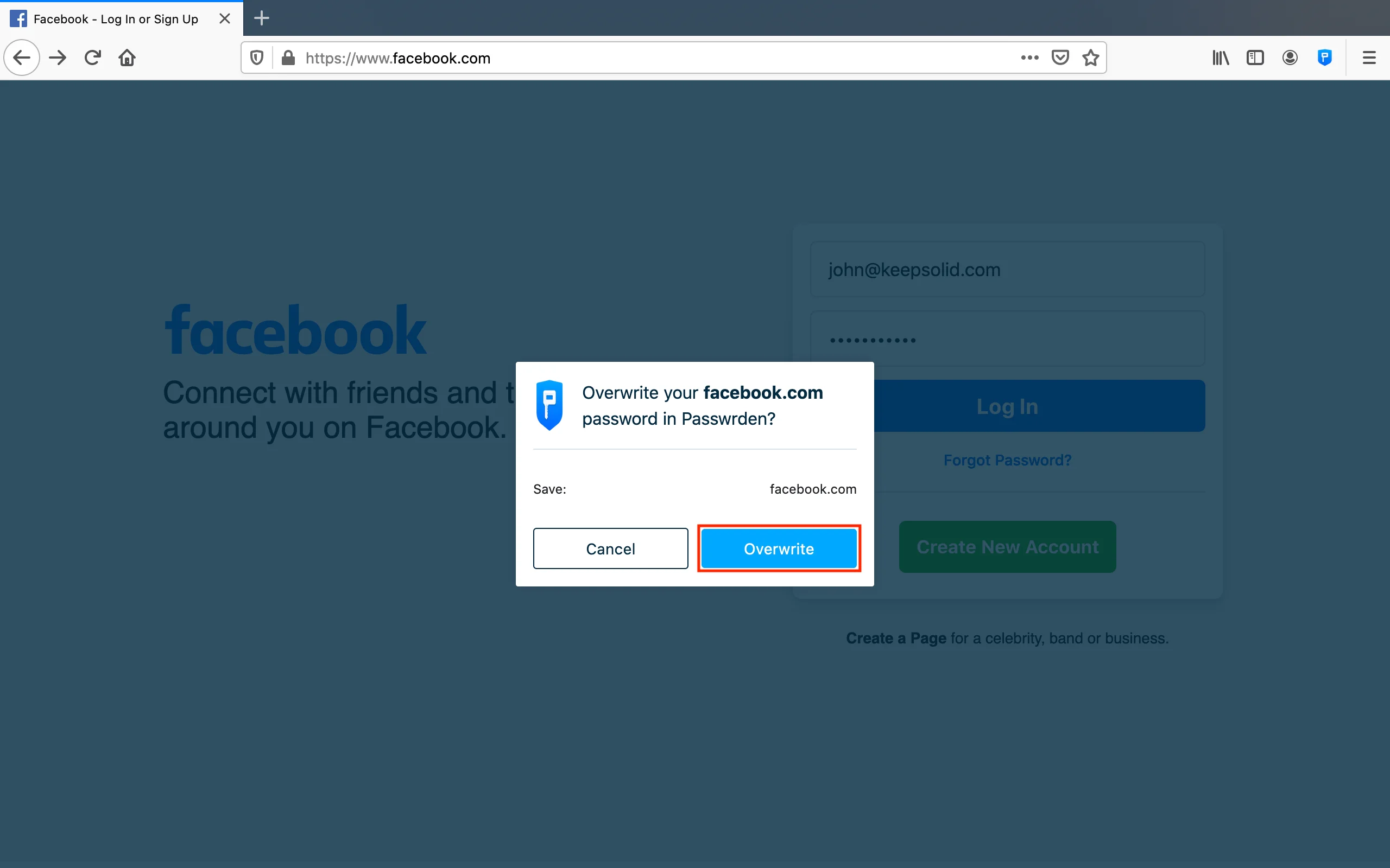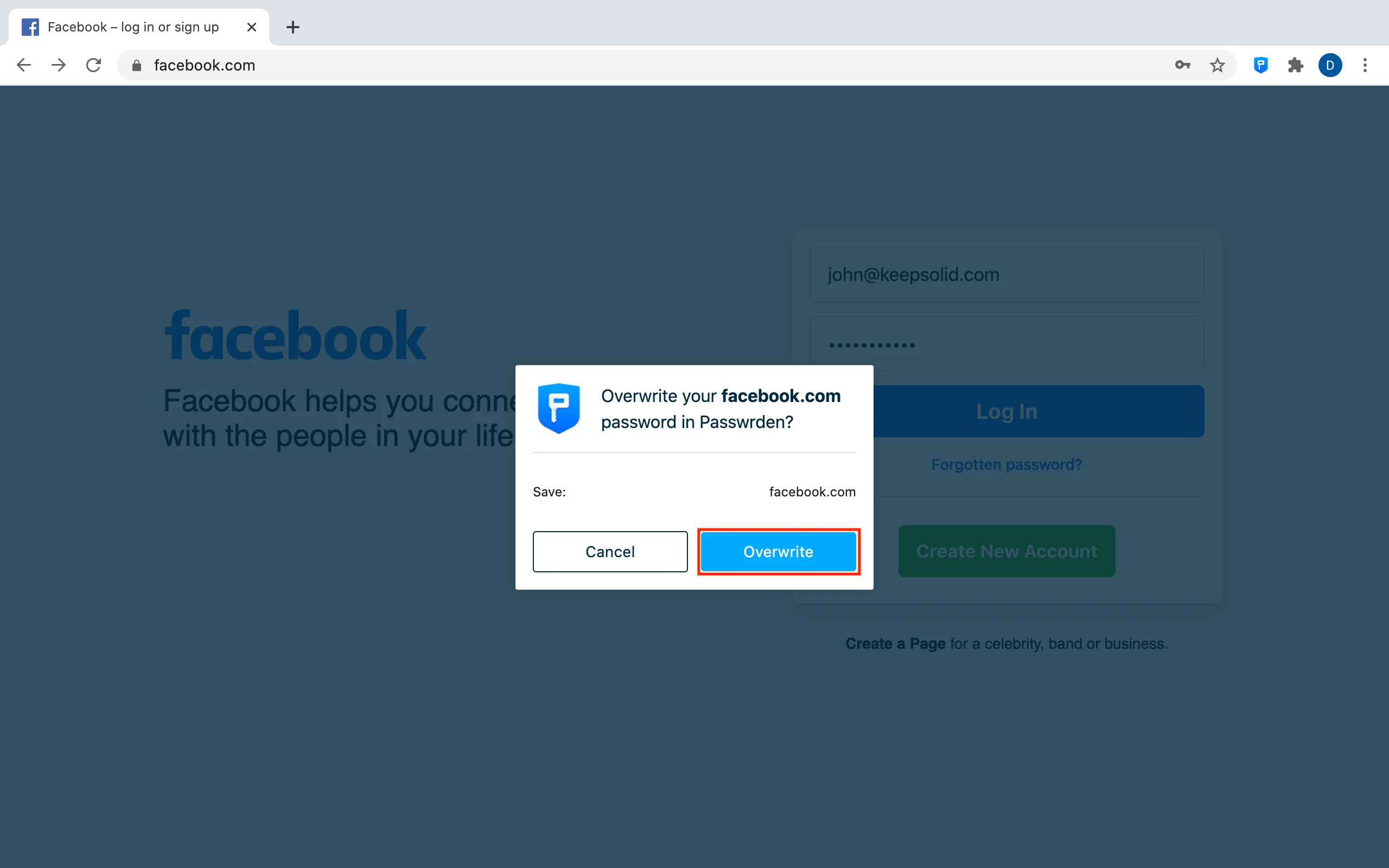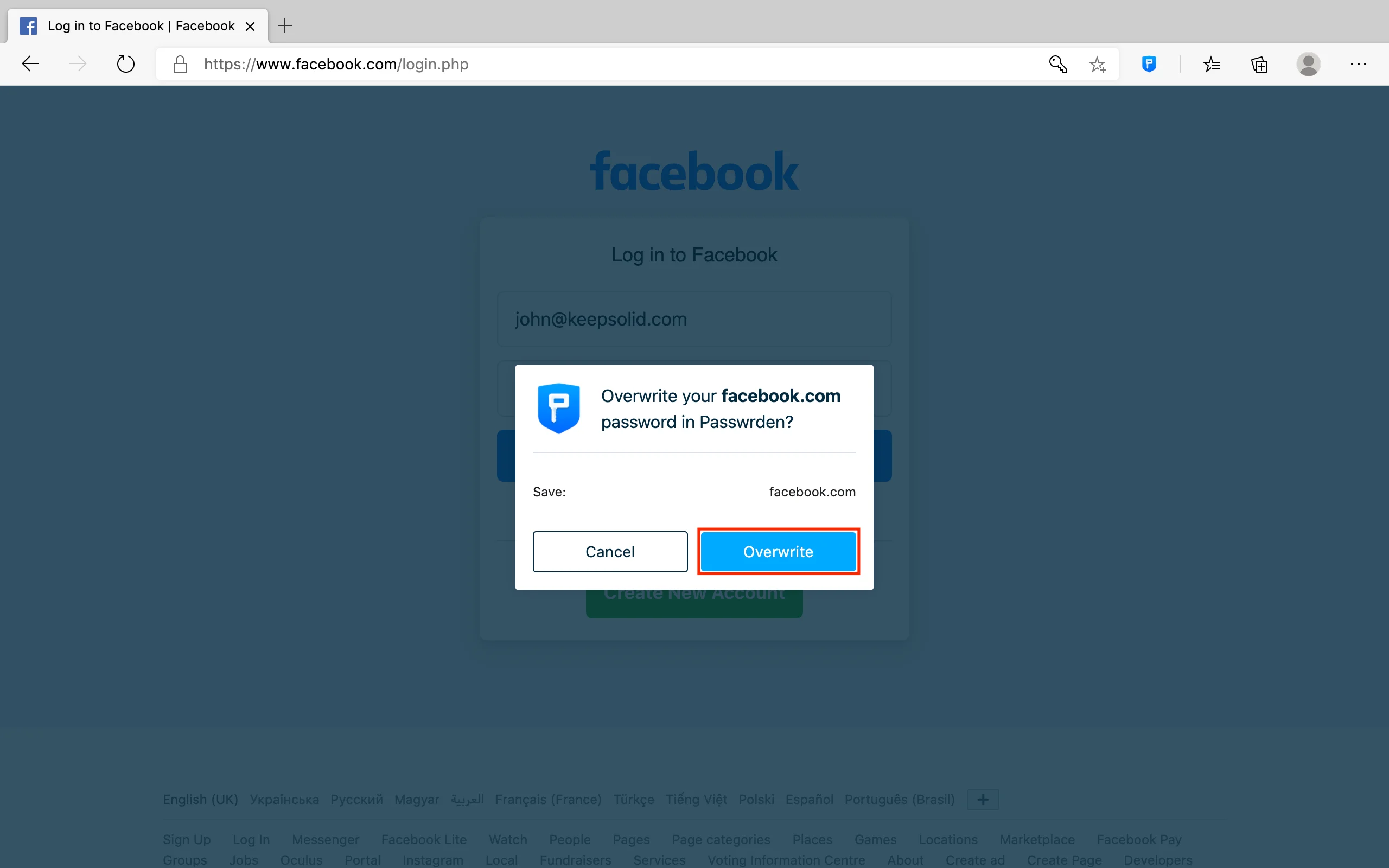 2.1. Якщо у вас уже є облікові дані, пов’язані з цим вебсайтом, вам буде запропоновано оновити їх. Для цього натисніть Overwrite (Перезаписати).