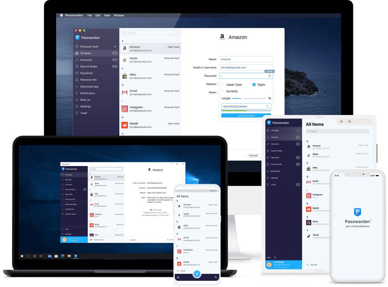 Passwarden 应用程序可以在所有主流平台上使用,包括 Windows、macOS、iOS、Android、浏览器扩展和 Web 应用程序。更棒的是,这个家庭密码管理器可以同时在不限数量的设备上使用。